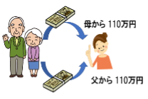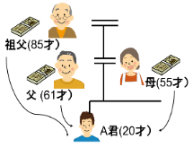 A1 祖父と父からは2500万円ずつ合わせて5000万円を相続時精算課税制度を使って無税で生前贈与を受けることが出来る。その後祖父、父の相続発生時には他の相続財産に加算して相続税を払う必要がある。母親は60才を超えた後に相続時精算課税制度の適用が可能になる。尚、父からは相続時精算課税制度を使い、母からは毎年110万円まで無税となる暦年贈与を選択する事も可能。